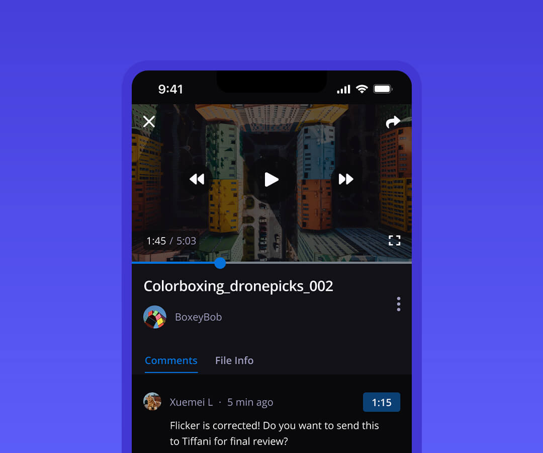 Mobile users can leverage MediaBox, Ci’s built-in file-sharing feature, to seamlessly view shared links sent by collaborators. The app can also be used to quickly send (or resend) MediaBox links to clients or team members.