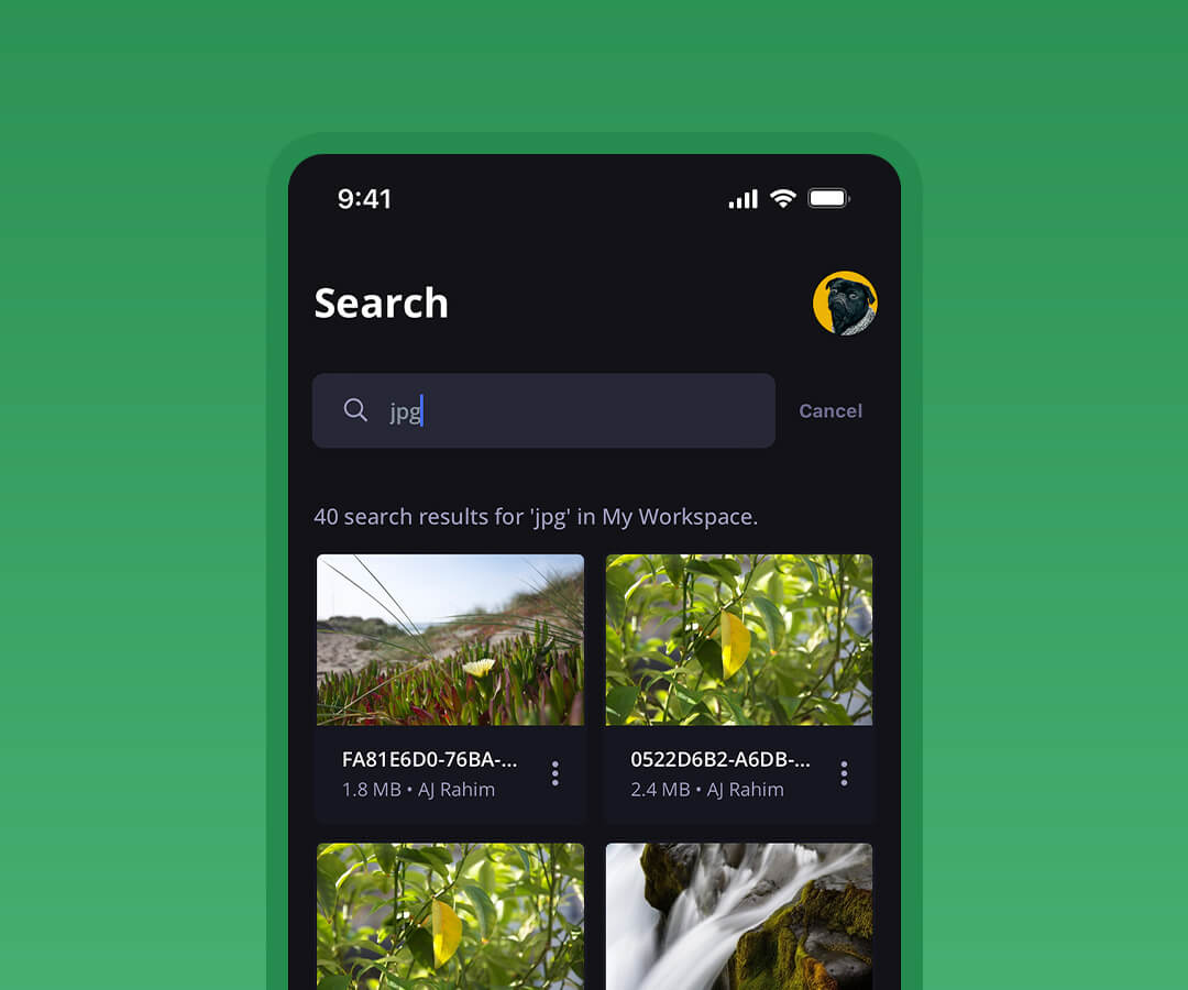 Your Workspace is your home base. It’s where all your rich media is stored and managed. Ci Media Cloud Mobile gives you direct access to this Workspace, allowing you to search and share large files from anywhere—no computer or keyboard necessary.